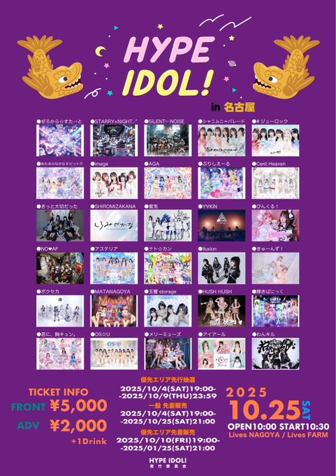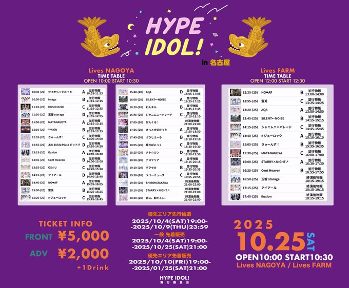 難波・日本橋 cafe&bar princess princessゐななさんがリポストぴんくる!@Pinkle_official·3時間【💗#ぴんくるライブ情報 🖤】 🗓10/25(土) 『HYPE IDOL!名古屋』 📍Lives NAGOYA 👛優先エリア ¥5,000 / 一般 ¥2,000 / 当日券+¥500 (各+1D) ⏰OPEN 10:00 / START 10:30 ーーーーーーーー 🎤17:05〜17:25 📸21:00〜22:00 ーーーーーーーー チケット発売中! 🎟: https://ticketdive.com/event/hype_nagoya_1025…はるぽん🎀🪄ぷりしえーるさんと他1人引用ぴんくる!@Pinkle_official·10月16日【💗#ぴんくるLIVE情報🖤】 🗓10/25(土) 『HYPE IDOL!名古屋』 📍Lives NAGOYA / Lives FARM 👛優先¥5,000 / 一般¥2,000 / 当日券+¥500 (各+1D) ⏰OPEN 10:00 / START 10:30 🎤📸タイムテーブル後日発表 🎀お目当て特典→Tiktok撮影 (楽曲指定:ぴんくるPONdeChu!) 🎟: https://ticketdive.com/event/hype_nagoya_1025…49913