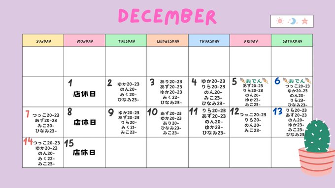 難波・日本橋 プラネットサルーンプラネットサルーン(公式)@PLANETTsaloon1·6時間あんず、19:30~になりました引用プラネットサルーン(公式)@PLANETTsaloon1·8時間🪐11/29(土)惑星着陸メンバー🪐 むつき@mutsuki_jap 18-22.5 しょう@syo_u_jap 18-23 ふじ@fuji_saloon 18-23 ゆあ@yooa__PS 18-23 あんず@anzu_ps 19-23 #ヲタロード #コンカフェ #紫の惑星コンセプト1170