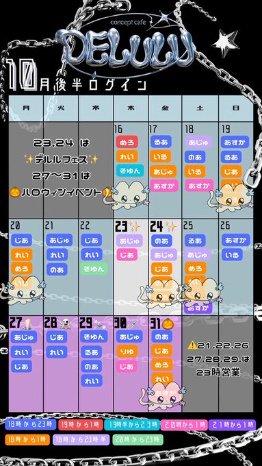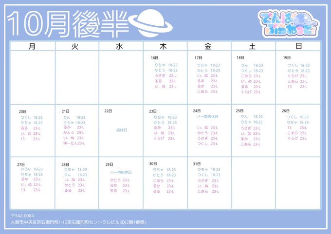難波・日本橋 DELULUめろ@xnyanchanm·10月後半予定⤴️⤴️ 全部オーラスでいます꒰ᐡ⸝ɞ̴̶̷ ·̮ ɞ̴̶̷⸝ᐡ꒱♡15433