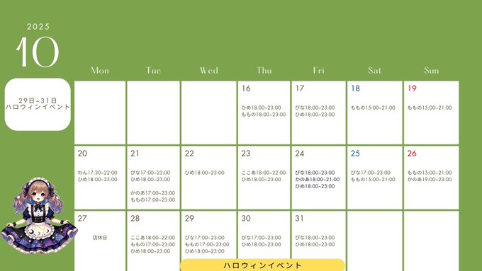 難波・日本橋 cafe&bar Twinkle固定Twinkleてぃんくる【大阪日本橋コンカフェ】@cafebar_twinkle·後半シフト 29日~31日 ハロウィンイベント281,423