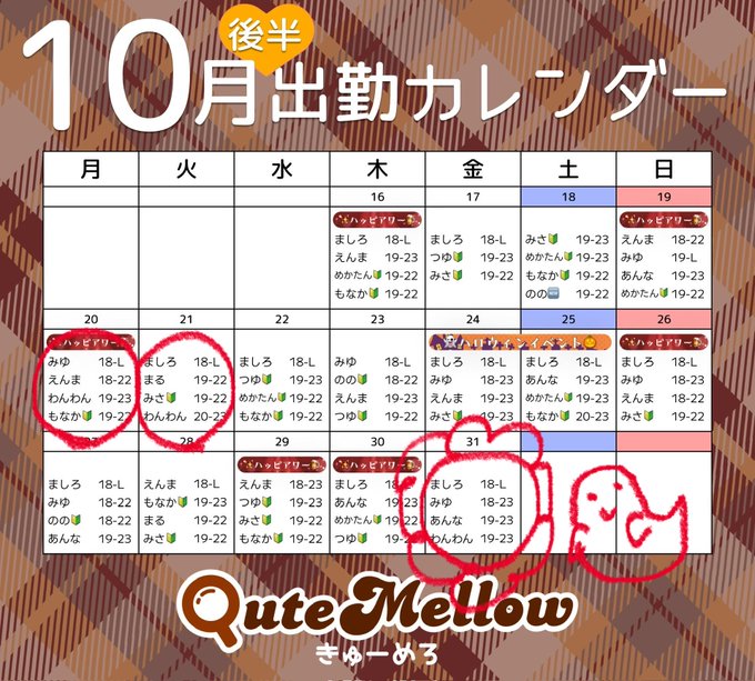 難波・日本橋 Cafe&Bar QuteMellow -きゅーめろ-固定🐶わんわん🐶@wanwan_uoxcu·10月後半シフト🫶 31日はハロウィンだしコスプレするぞ🎃10162