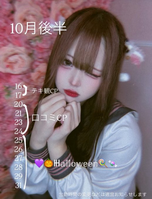 固定駒莉のか@PARFUN大阪@PANIER_noka·【10月後半会える日】 緊急です!!!⚠️🚨予定ください!!! 10月後半たくさんののかぱふゅと会えますよーに💫💫のきもち!!! 全て18-23時です。 リクエストなどではやく出る日もあります。 都合がいい日程、時間教えて頂ければリクエスト出勤もできます🪄︎︎✨ #コンカフェ #コンカフェ嬢 #日本橋360979