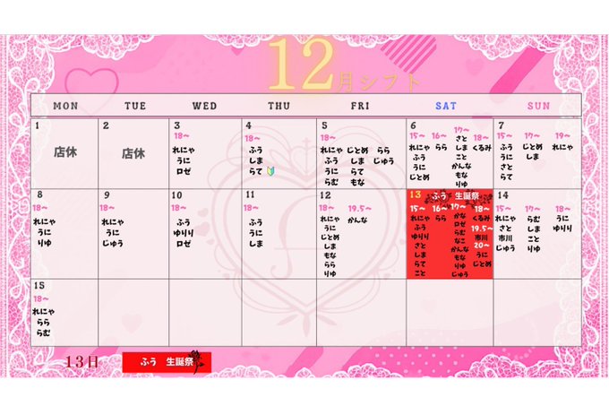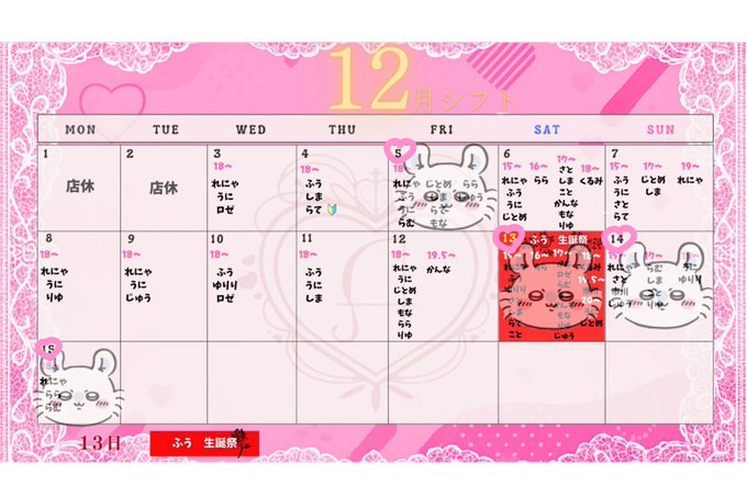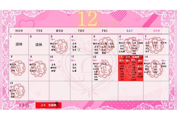 難波・日本橋 じゃぱにーずKAWAii固定じゃぱにーずKAWAii(公式)@JPNZKAWAiiN·🎀12月前半シフト🎀 #12月13日 #るん誕生日会 @ru_n_jap110