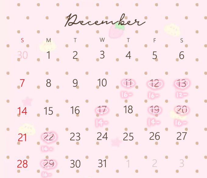固定しおり@shi0ri_168·♡12月前半予定♡ 4日18~22 6日17~22 13日17~22 14日17~22 1.2.8日 定休日🌙𓈒𓂂𓏸 6.7日 わんちゃんイベ🐶 12.13.14日 アニコスイベ💗 会いに来て欲しいな(⑉• •⑉)❤︎17181