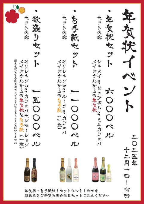 難波・日本橋 maid cafe ますかっとますかっと(公式)🍇@muscat_maid1·🍇イベントのお知らせ🍇 12/1~12/7に年賀状イベントを行います。 たくさんのご帰宅お待ちしております✨ 詳細はこちら⬇️127679