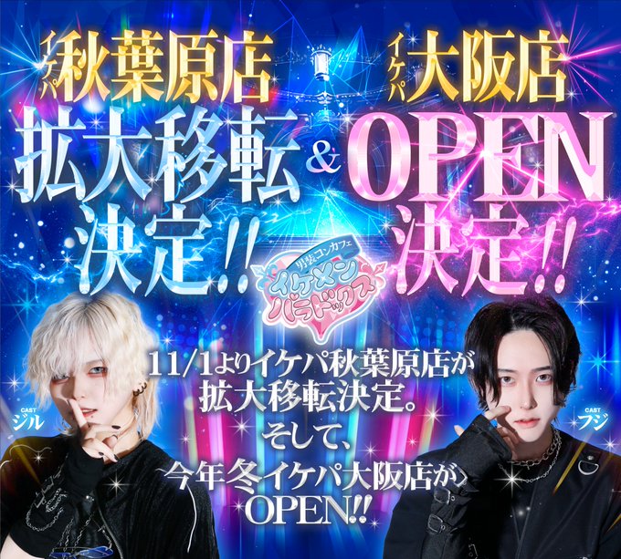 難波・日本橋 ~男装コンカフェ~イケメンパラドックス大阪店~男装コンカフェ~イケメンパラドックス 大阪店@ikepa_osaka·10月15日2025年冬オープンします🥀 求人情報お待ちください(*ˊ˘ˋ*)ᥫᩣ ̖́- #大阪コンカフェ #日本橋コンカフェ #ミナミコンカフェ #宗右衛門町コンカフェ #コンカフェ営業 #コンカフェ引用~男装コンカフェ~イケメンパラドックス 秋葉原@ikepa_akiba·10月15日━ 重大告知 ━ 🥀_𝐈𝐊𝐄𝐌𝐄𝐍𝐏𝐀𝐑𝐀𝐃𝐎𝐗_🥀 ꒦꒷꒦꒷꒷꒦꒷꒦꒷꒷꒦꒦꒷꒦꒷꒷꒷꒦꒷꒦꒷꒦꒷꒷꒦꒷꒷꒦ 11月01日(土)秋葉原店拡大移転 ┈┈┈┈┈┈┈┈┈┈┈┈┈┈┈┈┈ 2025年冬イケパ大阪店𝐎𝐏𝐄𝐍さらに表示3146,729