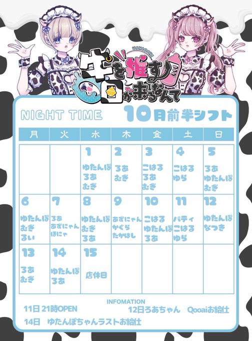 心斎橋・ 宗右衛門 Qooaiた か は し 。@Q_tkhs·わたしうし推しにも出勤しまする 10/9 ナイト! 10月前半これのみです 昼職忙しマン、、😢牛を推す日が来るなんて。【ミナミのコンカフェ】3128
