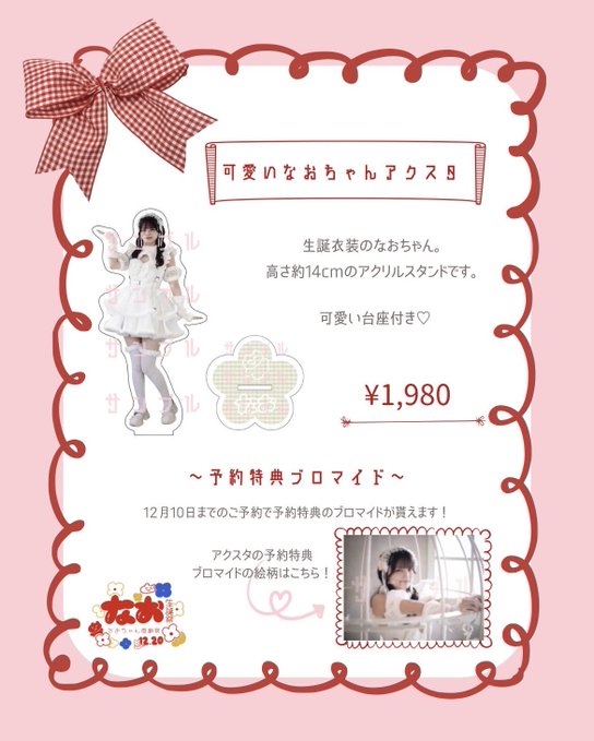 心斎橋・ 宗右衛門 黒猫メイド魔法カフェ大阪店なお❤︎12/20(土)生誕@nao_kuroneco·おはなお❣️ 2025.12.20(Sat) なお生誕祭〜なおちゃん大感謝祭〜 ❣️【改訂版】グッズ詳細です❣️ 予約は直接orリプでお願いします🍒🎶 アクスタのサンプルも公開〜💞 12/10までの予約で特典ブロマイドもつきますよ〜1518567