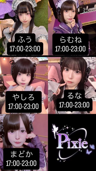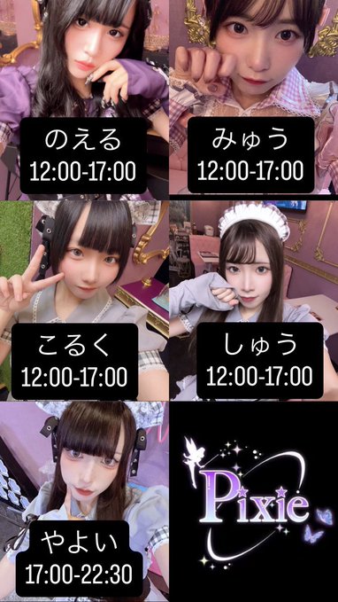 難波・日本橋 MaidCafe Pixie🦋🧚♀️MaidCafe Pixie🧚♀️🦋@maidcafe_pixie·17-23 ふう@fuu_pixie らむね@ramune_pixie やしろ@yashiro_pixie るな@luna__pixie まどか@madoka_pixie たくさんのご来店お待ちしております💟12123