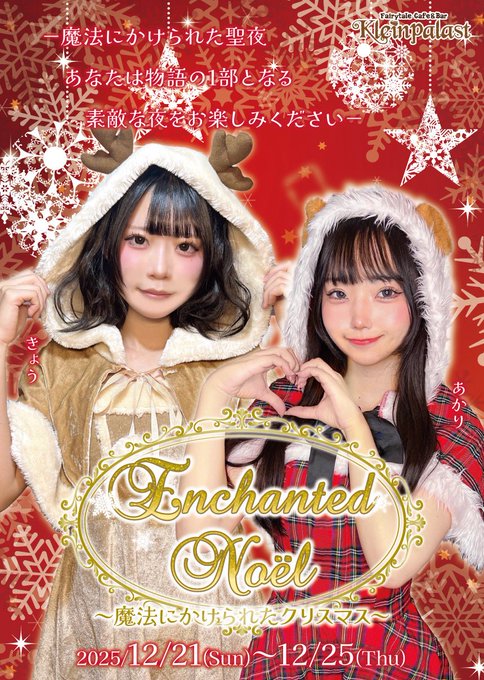 難波・日本橋 クラパラエリナ@クラパラ@KlePala_erina·15時間まずPOPがかわいい💗💗 クリスマスはだいすきっすよ🎄🎁🎅🌟引用クラパラ┃大阪・日本橋🦉童話コンカフェ@KlePala1020·19時間*⋆⸜ イベント告知⸝⋆* 🎄Enchanted Noёl ~魔法にかけられたクリスマス~🌟 2025/12/21(日)~12/25(木) 𐂂𝑀𝑒𝑟𝑟𝑦 𝐶ℎ𝑟𝑖𝑠𝑡𝑚𝑎𝑠*॰ ✩.·。*.·゚✧.·。*.·゚✩ .·。*.·゚✧.·。*. 魔法にかけられたゲストの皆様と 素敵な聖夜の物語の始まり…🦌🎁 ご来城おまちしております.ᐟ🔔3192