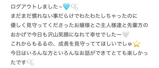難波・日本橋 パルファン 大阪店まる0124@PARFUN大阪@maru__ww·クラパラろぐあうと! お久しぶりのゲスト様も、初めましてのゲスト様もたくさん話してくれてありがとうございました✨ 久しぶりの出勤でしたが、みんながいっぱい話してくれてゲームもさせてくれたので、すごい楽しかったです💓 次は明日17:00〜23:00パルファンです💐 久しぶりすぎて緊張…114241