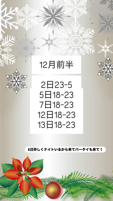 💎episode168💎店休日12/1.2.8.15さんがリポストらら@rara168_·12月前半出勤日🈷️ ♡ 6,7日 🐶わんちゃんイベント🐶 12,13,14日 ♡168アニコスイベント♡ 1,2,8日 定休日🌙*゚ 12月はもっと沢山の人と仲良くなりたいなあ🍀*゜14205