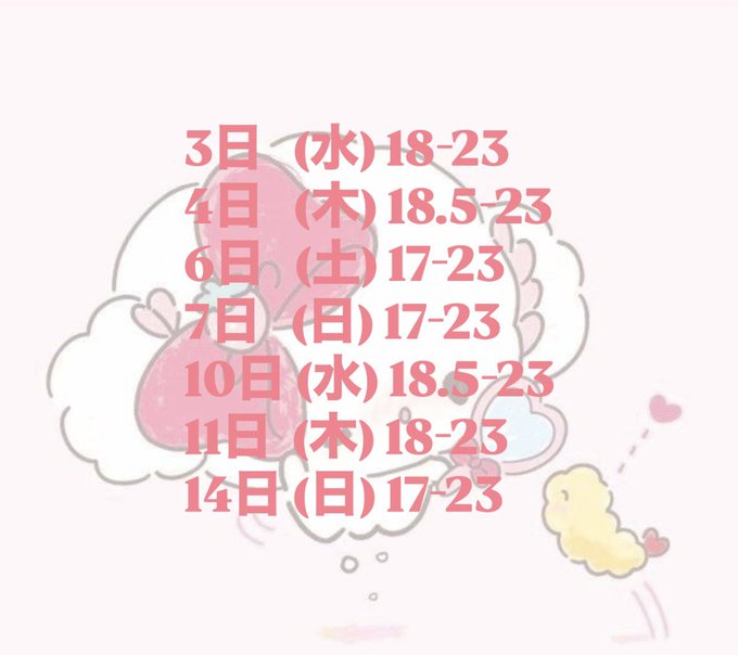 難波・日本橋 Cure Castle(キュア キャッスル)固定ここにゃん@7lnyan_cure·12がつ前半予定🗓♡ 2日 18-22 3日 18-22 4日 18-22 5日 18-22 6日 16-22⭐️フリコスイベント 7日 17-22⭐️フリコスイベント 9日 18-22 10日 18-22 11日 18-22 12日 18-22 13日 15-2 14日 18-22🎂せなさん生誕 店休日💤1.8.159366