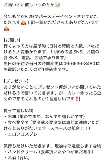 難波・日本橋 サキュバスシーシャバーMorrigan山田Gカシス💚Succubus&Angel MORRIGAN@cassis_morrigan·7時間みんな把握!!!!!しろ!!!!引用まめ🐈11/28.29生誕@mame_morrigan·11時間退散してました!次は生誕だね🫶を裏切られ続けてておもろい 乾杯チップチェキ前祝いぽんにお祝いの言葉まで全部ありがとうございました‼️なんかすでに満足してるけど本番明日明後日なんですよね緊張してきた‼️ お席予約&シャンパン予約当日でも受付可! POPとお願い事もっかい載せておきます🫶 x.com/mame_morrigan/…1183