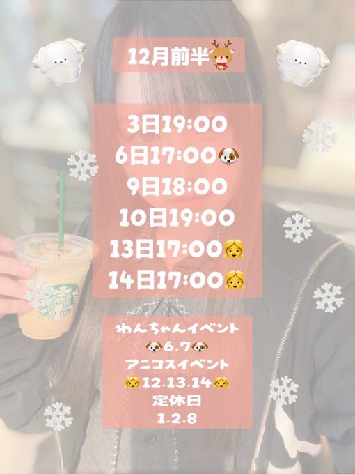 難波・日本橋 Maid Cafe Cotton固定MaidCafe Cotton@cotton_otaro·⭐︎12月前半お給仕予定⭐︎ ♡5-7日♡ 🧣私服イベント(冬服)👗 ♡14♡ たくさんのご主人様お嬢様のご帰宅をお待ちしております🐏 #メイド大阪 #メイドカフェ大阪 #メイドカフェ求人 #キャスト募集12264