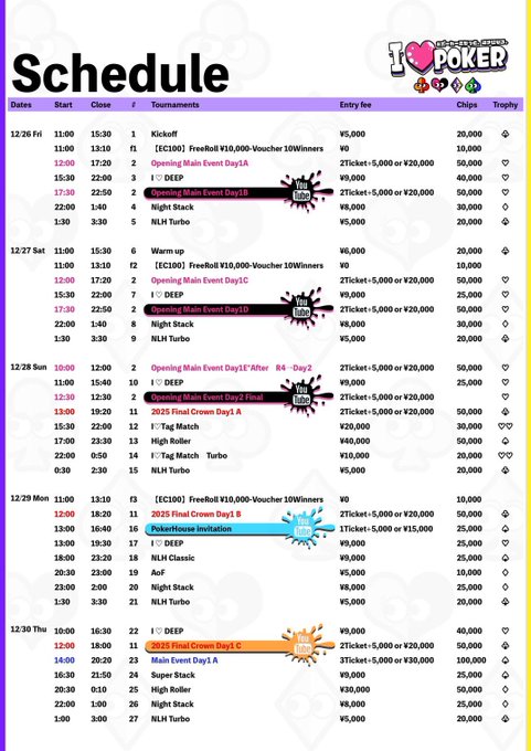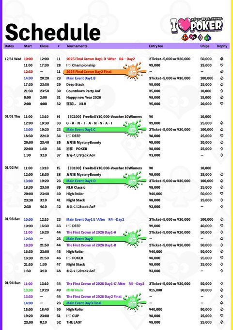 心斎橋・ 宗右衛門 夜はまるで――のようにみく✩.*˚さんがリポストI LOVE POKER【らぶぽ】@i_love_poker__·/ ✨📣ついに発表!📣✨ 《 I LOVE POKER(らぶぽ)》 💖 スケジュール公開 💖 \ お待たせしました…! 年末年始の I LOVE POKER 全日程をついに公開します🎮🌈 “毎日来ても楽しいイベント” がぎっしり盛りだくさん🔥 今回は、年末のカウントダウンから 新年にちなんだ特別イベントまで…さらに表示31681.6万