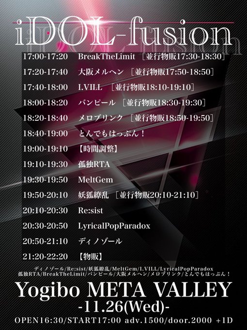 難波・日本橋 サキュバスシーシャバーMorriganはるに@サキュバスシーシャMORRIGANさんがリポスト卯月 はるに@Resist_Hm·6時間あしたはこちら!初箱!たのしみ!! 先日推しが出てたのでニコニコ出演です☺️引用Re:sist@Resist_idol·11月2日..꒦꒷ 🌐 #ResistLIVE 🌐 ꒦꒷.. 〖iDOL-fusion〗 ▍11月26日(水) ▍ OPEN 16:30 / START 17:00 ▍出演時間▶︎ 20:10-20:30 ▍ Yogibo META VALLEY ▍ ADV ¥1500 / DOOR ¥2000(+1D) 🎫 https://tiget.net/events/44095637587