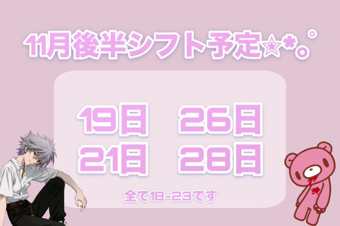 難波・日本橋 じゃぱにーずKAWAiiかえ 11/15誕生日会@ka_e_jap·5時間21日おやすみもらったので変わりに 30日(日)18-23で出勤します🙏引用かえ 11/15誕生日会@ka_e_jap·11月19日11月後半シフトです‼️1146