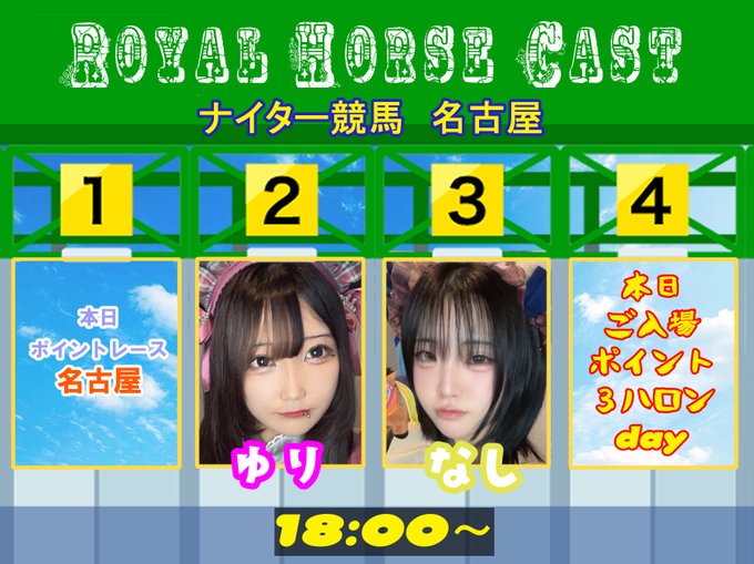 心斎橋・ 宗右衛門 ROYAL HORSEROYAL HORSE🏇ろいやるほーす@royalhorse2024·11/25(火)本日の出走キャスト🏇 本日入場3ハロンDAY❣ ナイター競馬🌃名古屋 梨 @rh_uma_nashi ゆり @rh_uma_yuri #競馬 #コンカフェ #心斎橋 #d払い36
