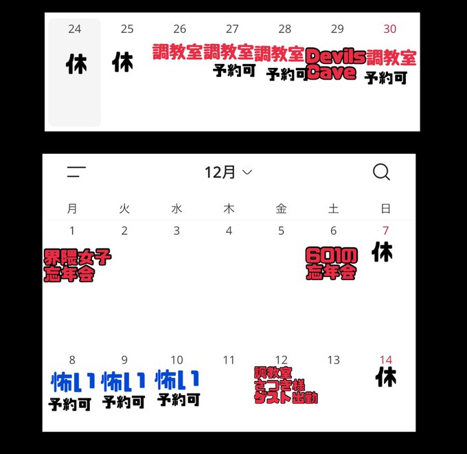 心斎橋・ 宗右衛門 調教室みすけ@a1222z·シフトです。 赤色は大阪で、青色は東京 空白はまだ未定💦 DevilsCaveと忘年会関係はDMで🙆♀️ プレイの予約はお店まで✉️内容の警告: 成人向けコンテンツこのポストは、成人向けコンテンツを含むポストとしてXによりラベル付けされています。表示1171,524