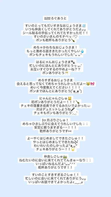 難波・日本橋 DELULUあすか@askx___·11/23乾杯ドリンク、遠隔ありがとうございました🎀大好きな人達から頑張ってるねって言ってもらえることが一番の励みです߹-߹♡ᵎᵎᵎ1697