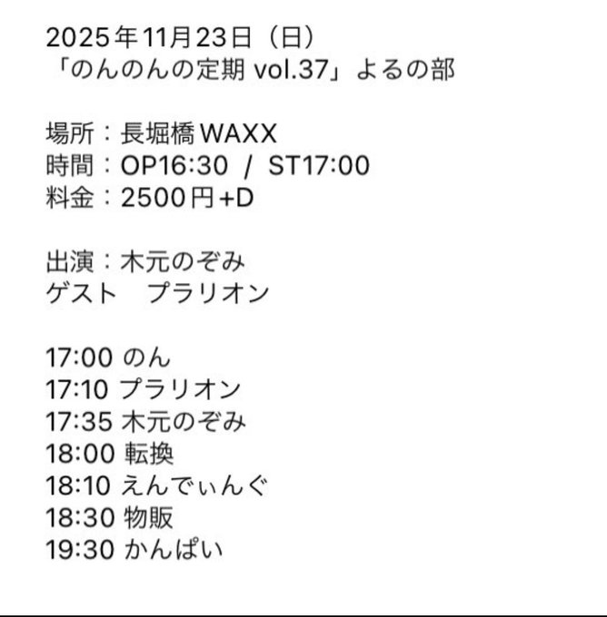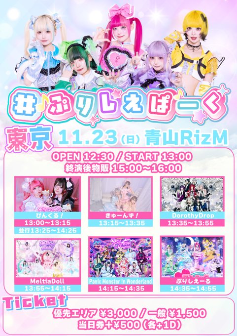 難波・日本橋 cafe&bar princess princessゐなな@inana_aa·1時間本日のらいぶ🎤🎵 東京でのライブは初!!!!!みんなに会えるの楽しみにしてるね~💗🖤引用ぴんくる!@Pinkle_official·10月31日【 💗 #ぴんくるLIVE情報 🖤 】 🗓11/23(日)📍青山RizM 『#ぷりしえぱーく東京 対バン編』 ⏰OPEN 12:30 / START 13:00 🎤 13:00〜13:15 LIVE 📸 13:25〜14:25 並行物販 🗣 14:55〜15:00 合同MC 📸 15:00〜16:00 終演後物販(ゐななのみ) 11/1 21時チケ発!! 🎟 http://tiget.net/events/440450313463