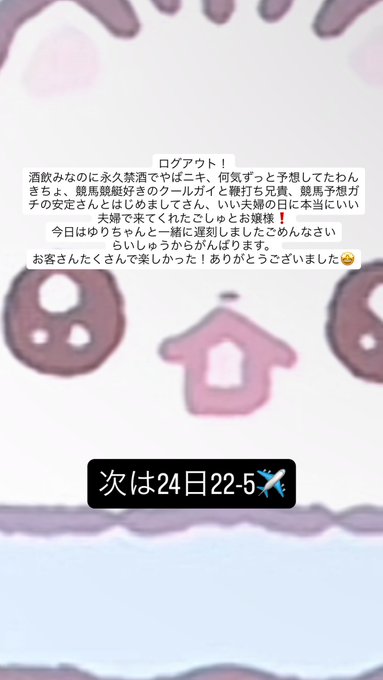 難波・日本橋 まいんあむっ@mine@amu_mine·6時間♡ろぐあうと♡ 本日もみなさんたくさんありがとうございましたჱ̒(> ̫< 次は23日(日)16-22⭐️引用あむっ@mine@amu_mine·16時間22時まで♡17286