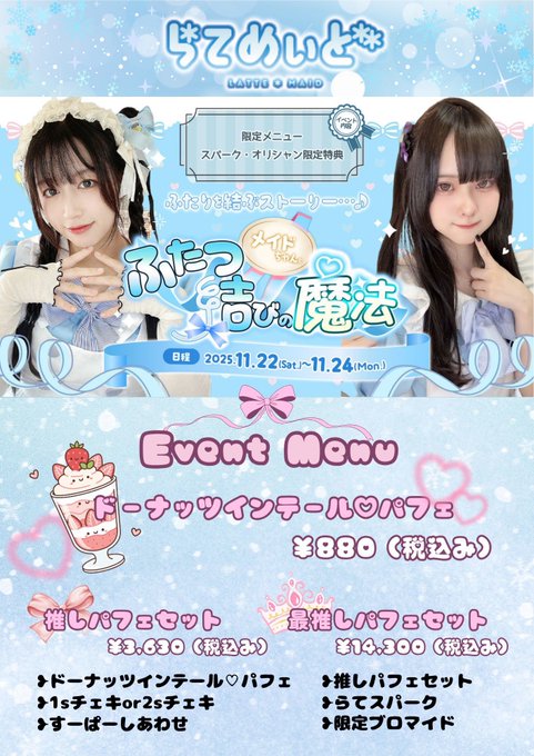 難波・日本橋 雪国のお絵かきメイドカフェらてめぃど雪国のお絵描きメイドカフェ らてめぃど 日本橋オタロード本店@lattemaid_otaro·❄️日本橋メイドカフェ『らてめぃど』Open❄️ ❄️11月22日(土)❄️ 🤍12-22 れみ@remi_latte くれあ@kurea_latte 🤍13-17 ミミ@mimi_latte07 🤍18-22 めろ@mero_latte2 ご主人様、お嬢様の ご入国をお待ちしております❄️19624