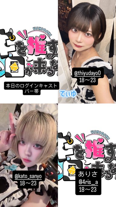 心斎橋・ 宗右衛門 牛を推す日が来るなんてそのぎ⭐️さんがリポスト牛を推す日が来るなんて。【ミナミのコンカフェ】@ushioshi_·🐮 本日のロギュインは... 🍼 ○てぃゆ @thiyuoshi 18〜23 ○加糖 @Kato_Sugar_401 18〜23 ○ありさ @4ris__a 18〜23 ●るい @jl2k1_ 23〜6 ●ゆっけ丼 @mochimochig0han 23〜6 ●そのぎ @sngchankr 23〜6 ご帰宅お待ちしております🎵 ----------------- ●営業時間● 毎日 18:00-翌6:00さらに表示21253