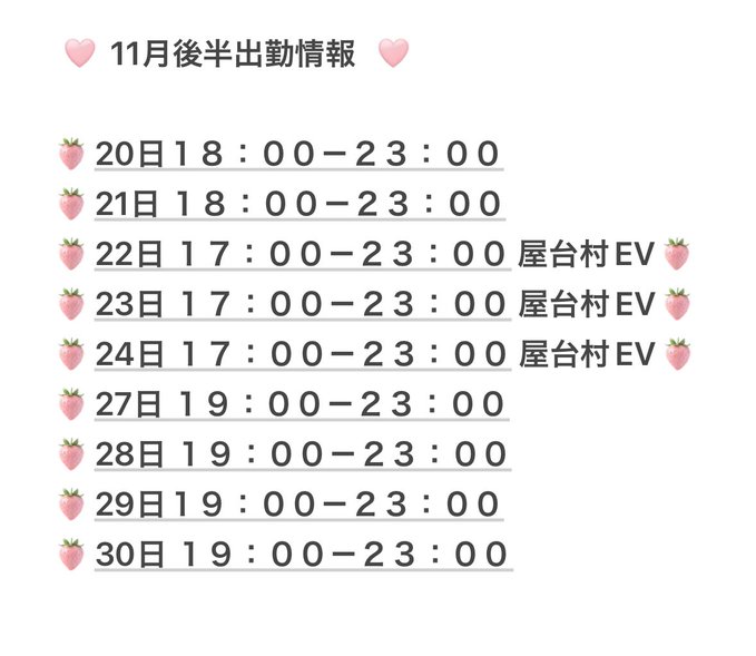 💎episode168💎店休日12/1.2.8.15さんがリポストおさゆ♡@sayuri0168·2時間すみません。今日お休みです🙇🏻♀️🙇🏻♀️🙇🏻♀️引用おさゆ♡@sayuri0168·11月18日❤︎11月後半出勤情報❤︎ どんどん年末に近付いてる感じ^_ ̫ _^💤 屋台村Tシャツ着るの楽しみです。14340