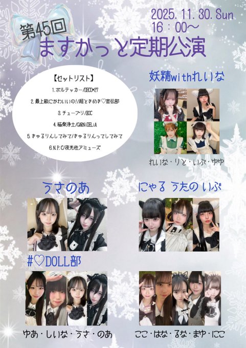 難波・日本橋 maid cafe ますかっとますかっと(公式)🍇さんがリポストノア@noir_muscat·おきゅいん!! 16:00〜定期公演です🎶 衣装とてもとてもこだわって作ったので 褒めてください^>𐋣