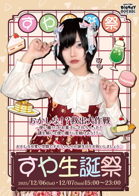 難波・日本橋 クロナイクロナイ┃大阪・日本橋🦇魔界コンカフェ@bloody_gothic_·🍩🧁12月の御案内🥞🥨 【すや生誕祭】 12月6日(土)&12月7日(日) 15:00〜23:00 今年のすやちゃんの生誕祭は 『おかし』がテーマとなっています🍪 謎解きをして使い魔ちゃんを助けてあげましょう🍭6169