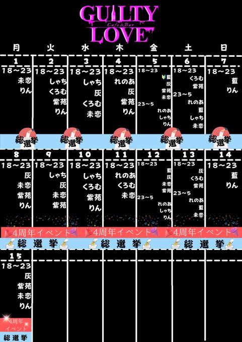 心斎橋・ 宗右衛門 GUILTY_LOVE固定ギル♡ラブ@GUIL___LOVE·12月前半の元彼帰宅日🏩 【前半イベント✨】 1日〜15日 総選挙🗳 8日〜15日 4周年イベント🎉 #メンコン #メンズコンカフェ #ミナミ #メンコン求人 #ギルラブ1140