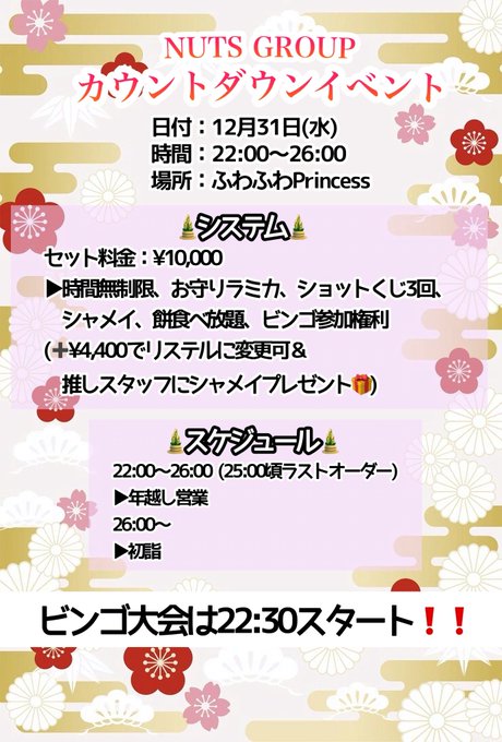 難波・日本橋 MaidCafe Pixieぴゅな♡ふわぷりさんがリポスト🥜NUTS.G🥜@nuts_g_official·17時間カウントダウンイベント出勤メンバー🎍♡ ────────── 🥜白玉つきみ@tukimi_nuts 🧚♀️ふう@fuu_pixie 🐈まろん@maron_nekopi 🧚♀️るな@luna__pixie 🧚♀️みゅう@myu_pixie ────────── NUTS.Gの女の子達と一緒に2026年を迎えましょう🐴♥ たくさんのご来店お待ちしております⛩♡引用🥜NUTS.G🥜@nuts_g_official·17時間🎍カウントダウンイベントのお知らせ🎍 日付:12月31日(水)22:00~26:00 場所:ふわふわPrincess NUTS.Gスタッフと一緒に2026年を迎えましょう🐴♡ 初詣も一緒に行けちゃいます⛩♥ 詳細は下記画像ご確認ください! たくさんのご来店お待ちしております🥜♡16162,223