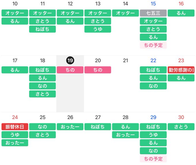 心斎橋・ 宗右衛門 Lunemari(ルネマリ) ミナミコンカフェもかしゃま@moca_tsugumi_·14時間日曜来店予定無かったらおらんかもです、、23日と30日、、引用もかしゃま@moca_tsugumi_·11月13日♡ 11月後半 ♡ 22日ナイト 🎂 23日 バー帯 29日 バー帯 🎌 30日 バー帯 🎌 🎂 すいちゃんお誕生日会 🎌 運動会ev13361