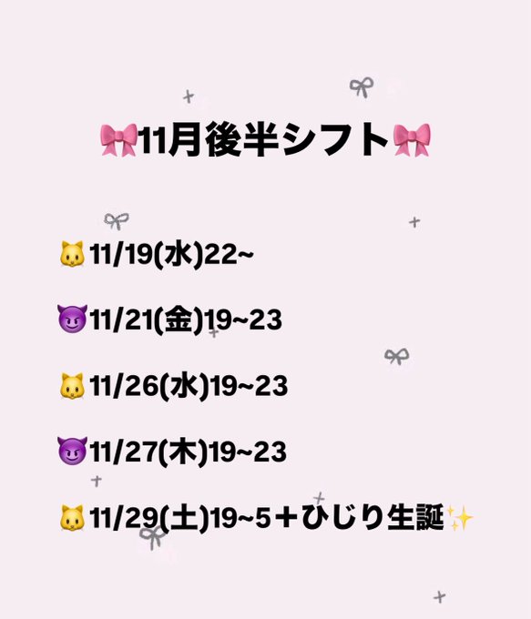 心斎橋・ 宗右衛門 カフェ&バーねこでび固定ひじり ねこでび11/29@necodevi_hijir·シフトです🎶 🐱→にゃどらぶる 😈→ねこでび です!もうすぐひじり生誕、緊張だけどみんなあいに来てね12702