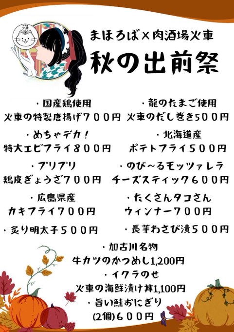 固定まほろば🪭@mahoroba_nanba·🪭まほろば10月前半シフト🪭 【お知らせ】まほろば✖️火車 🍂秋の出前祭🍂 期間限定:12日(日)13日(月)🍙🐟 皆様のご来店を 心よりお待ちしております🪭 ↓遠隔サイト✨ http://mahoroba1234.base.shop ↑クレカ決済などの追加してますので チェックお願い致します✅55592