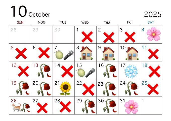 固定メイドBAR ほ〜むめいど@homemade_osaka·🏠10月出勤予定表🏠 (2025/10/10更新) 『ご新規様』は割引あり💰 🎃ハロウィン イベントやります🎃 ▶︎▶︎▶︎詳細は後日‼️ ❤️求人募集中❤️ ■17歳以上の女性 ▶︎▶︎▶︎詳細は画像をご覧下さい👀8123