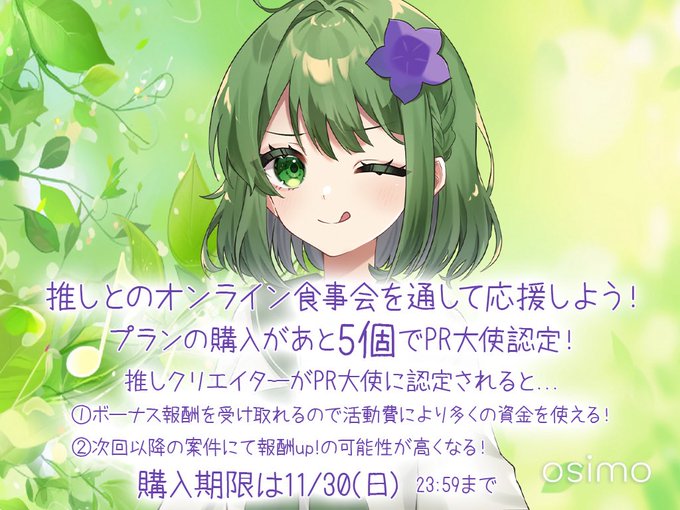 難波・日本橋 Cafe&Bar QuteMellow -きゅーめろ-たんそく(𖦹' ')マル@ジェヘナさんがリポストききょこ@12/6 5:45-世界一の歌枠リレー@kikyokosukiaso·11月28日引用元のOsimo商品の購入期限が30日までに延長されたよ! Osimoさんに告知画像も作っていただきました...!PR大使まであと5個!らしい!(今知った) 限定のデジタルチェキもあるので購入して応援してくれると嬉しい〜‼️一緒にお茶会しよ〜‼️💚 #PR #osimo引用ききょこ@12/6 5:45-世界一の歌枠リレー@kikyokosukiaso·11月27日あ‼️‼️‼️ 先日配信でお話したOsimoの販売期間が明後日までに迫ってる!みんなもう買ってくれたっ? きょことお話しながら高知の美味しいお菓子食べよ〜!💚 https://room8shop.base.shop/items/125084875 #PR #きょこだより7131,136
