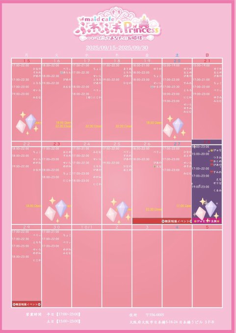 ぬいさんがリポストQuteMellow 大阪日本橋【コンカフェ】きゅーめろ@qutemellow·✨9月後半の出勤カレンダーのお知らせ✨ 出勤予定が変更となりましたので更新したカレンダーを共有致します。 後半は紅組、白組に分かれての体育祭イベントを開催します🎊 紅組、白組のチーム対抗戦期間は9/22〜9/28の1週間! 後半9/25〜9/28は体育祭の特別衣装を着用してお給仕させていただきます💕さらに表示32814