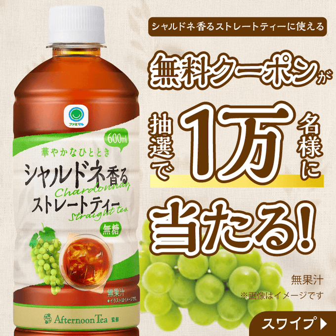 正方形のプロフィール画像ファミリーマート@famima_now// ファミマル シャルドネ香るストレートティー 無料クーポンが抽選で1⃣万名様に当たる🫖💚 \\ 📌応募方法 ① @famima_nowをフォロー ②本投稿に 【ファミマル】をつけてリプライ ③👇画像をタップして抽選へ 外れてももう1回応募する方法は スワイプしてチェック👀スライド1/3 - カルーセル画像をタップして抽選へ画像をタップして抽選へpetit.giftから51590823444万プロモーション