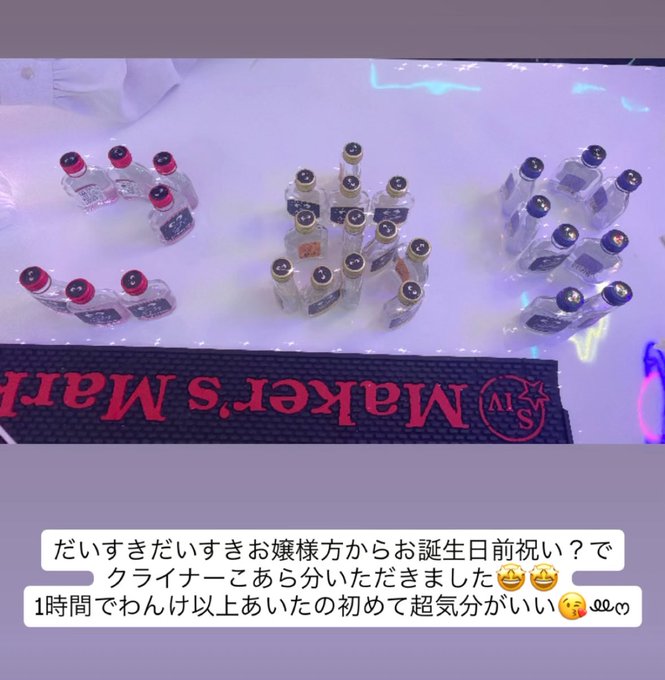 むく ♡7/27生誕祭♡@muku_kuroneco·昨日出勤したらフルラベルもノンアルオリシャンもアクキーもフォトブックも全部届いてないですって言われて大パニックだったけどめるさんがめちゃくちゃ手伝ってくださってここまできた😭めるさんがあまりにもカッコ良すぎて2mぐらいにみえました。本当にありがとうございます😭💖1224701