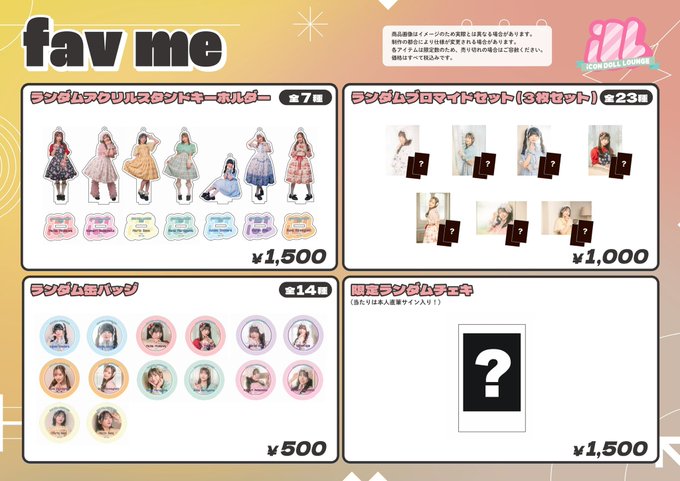 ♡たるとてんちょ!♡ Stella🌟@trtchan__·1時間全種ランダム…どうしよう…うう引用fav me【Official】@_fav_me_·1時間私たち、fav me(ファボミー)です♡ 「アイドル×ファッションの融合」をテーマに、ラフォーレ原宿で開催された『iCON DOLL LOUNGE 2025 〜 EXTRA SUMMER 2MAN LIVE!! 〜 』で着用したブランド衣装による限定グッズがついにiDL公式通販にて販売が決定‼️さらに表示1196