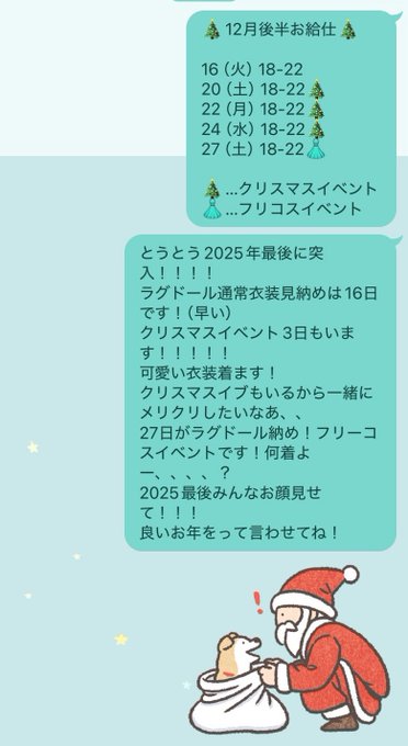 難波・日本橋 子猫maidcafeRagdollるな🐈⬛🌙Ragdoll@Rag_runa·12月後半お給仕予定!! ラグドール制服見納めは16日です!!! 他クリスマスイベント!(詳細二枚目) フリーコスイベントです! クリスマスイベントオリシャンで等身アクキーがつきます! いつもなら胸上までのアクキーがなんと全身!!!!!!絶対ゲットして欲しいです #るんるんるなタイム12229