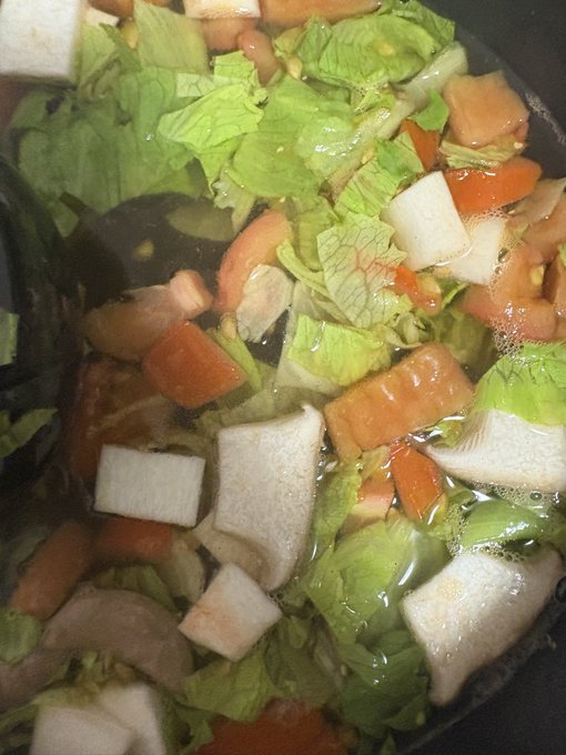 難波・日本橋 Cafe&Bar QuteMellow -きゅーめろ-えんま(閻魔)@sakuramochi543·鶏むね肉ともやしのチーズガレット風 トマトとレタスのスープ #閻魔の地獄飯112163
