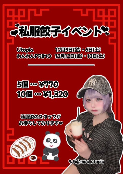 心斎橋・ 宗右衛門 Utopiaぱるむ♡Utopia@parumu_utopia·12月5日おる、ぎょざたべたい引用【求人大募集❕】🐈Utopia(ゆ〜とぴあ)🐈大阪コンカフェ@utopia_info_·12月5日Utopiaオープン🤍 12月5日(金)19:00〜29:00 🥟私服餃子イベント🥟 19-23 もな@mona_utopia もあ@moa_utopia せな@sena_utopia あぐり@aguri_utopia あくび@akubi_utopia ナイトメンバー⬇️4304