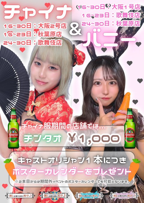 なぎ💙🐻❄️🫧@nagi_oshiose·4時間なぎ1周年です!2号店おります!引用推し推せっ!コンセプトカフェ❦@oshiose_concafe·6時間🔲9/24営業時間 18:00-Last🔲 推し推せ2号店 🇨🇳チャイナ&バニー🐰 18:00 きき@kiki_oshiose のえる@noel_oshiose なぎ@nagi_oshiose 19:00 せな@sena_oshiose 21:00 せかい@sekai_oshiose 23:00 ふぶき@fubuki_oshiose みゆ@miyu_oshiose213493