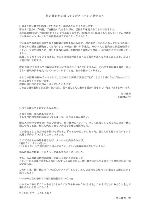 梅田・京橋 Solomon澪さんがリポスト甘い暴力@sweetviolencejp·いつも応援してくれている皆様へ 甘い暴力より、大切なお知らせです。 お読みください。13,8075,42055万