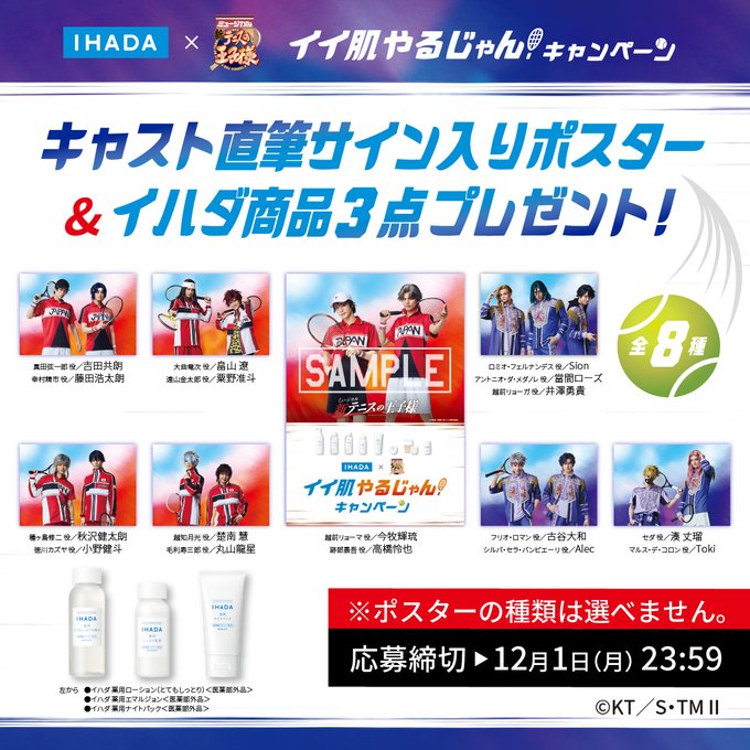 梅田・京橋 京橋コンカフェGreif(コンカフェ)ネロさんがリポスト正方形のプロフィール画像イハダ【公式】@IHADA_jp·【 #IHADA × #新テニミュ 】 \✨グッズプレゼント✨/ #イイ肌やるじゃん キャンペーン! #イハダ 商品3点と、公演中会場で展示していたパネル(全8種)と同じデザインのキャスト直筆サイン入りポスター1枚を、抽選で16名様にプレゼント!🎁 ⬇️参加方法 ①@IHADA_jp をフォロー ②本投稿をリポスト52,2591,68212万