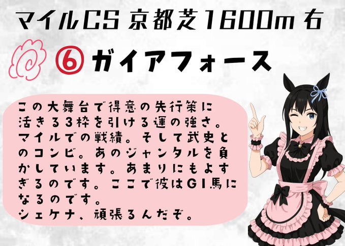 梅田・京橋 おたくばぁ えんじぇるこはく@AGLpro_kohaku·コハクチャンがマイルCSの予想を教えてくれたよ‼️178